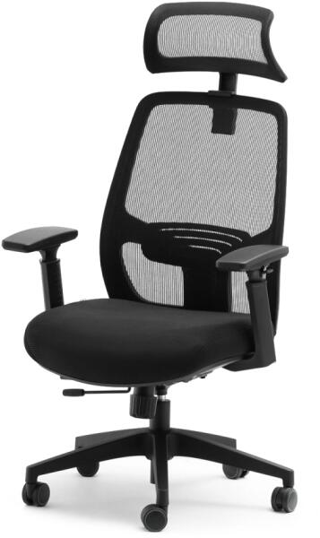 LARGO ergonomikus irodai szék – kényelem és stílus az Ön irodájábanA fekete LARGO irodai szék modern és funkcionális megoldás mindazok számára, akik a kényelmes munkavégzést és a helyes testtartást egyaránt fontosnak tartják. Ergonomikus kialakításának és számos állítási lehetőségének köszönhetően kiváló választás otthoni dolgozószobába, irodába vagy ifjúsági szobába. A LARGO irodai szék főbb jellemzői:Lélegző mesh szövet – biztosítja a megfelelő szellőzést és komfortérzetet. Állítható deréktámasz – igazodik a gerinc természetes görbületéhez. Hat fokozatban állítható karfák – egyéni igényekhez szabható. Hintamechanika – ellazulást biztosít a munkaszünetek alatt. Ülőlap magasságának állítása – személyre szabható kényelem. Minimalista design, maximális kényelemA LARGO irodai szék egyszerűséget és funkcionalitást ötvöz. Karcsú, mégis masszív szerkezete tökéletesen illeszkedik a modern enteriőrökbe. Klasszikus fekete színe elegáns megjelenést kölcsönöz, amely remekül harmonizál mind a minimalista, mind a hagyományosabb berendezésekkel. Kényelmes ülés a megfelelő légáramlássalA LARGO szék ülőlapja és háttámlája kiváló minőségű mesh anyagból készült, amely gondoskodik a folyamatos szellőzésről. Ezáltal hosszú órákon át tartó használat esetén is kényelmes marad – még melegebb napokon is. Mobilitás és stabilitás egybenA szék erős, forgó talppal rendelkezik, strapabíró görgőkkel. Ezek lehetővé teszik a könnyed mozgást bármilyen felületen – legyen az kemény padló vagy szőnyeg. A stabil váz biztonságos használatot garantál. Egészséges testtartás ergonomikus kialakítássalA LARGO szék háttámlája állítható deréktámasszal van felszerelve, amely megfelelő alátámasztást nyújt a gerincnek. Segít csökkenteni a fáradtságot és a hátizmok terhelését, így hosszabb ideig is komfortos marad a munkavégzés. Állítható fejtámla a még nagyobb komfortértA LARGO irodai szék fejtámlája többféle pozícióba állítható, így biztosítja a nyak és a fej optimális megtámasztását. Ez hozzájárul a nyaki izmok tehermentesítéséhez, ezáltal javítva a munkakörnyezet kényelmét. Személyre szabható karfákA szék hat fokozatban állítható karfákkal rendelkezik, így könnyedén beállítható az Ön igényei szerint. Ez segít fenntartani a helyes testtartást, miközben növeli a kényelmet a hosszú munkanapok során. Hintamechanika – relaxáció egy mozdulattalA beépített hintafunkció lehetővé teszi, hogy enyhén hátradőljön és ellazuljon munka közben vagy a szünetek alatt. Ez különösen hasznos azok számára, akik rugalmasabb és kényelmesebb ülőhelyet keresnek. Csendes és kíméletes mozgásA szék erős görgői simán és zajmentesen gördülnek minden felületen. Nem karcolják a padlót, így bátran használhatja parkettán, járólapon vagy szőnyegen anélkül, hogy aggódnia kellene a felület sérülése miatt. Méretek:Teljes szélesség: 63 cm. Teljes mélység: 64 cm. Teljes magasság (állítható): 113–126 cm. Ülőlap szélessége: 49 cm. Ülőlap mélysége: 50 cm. Ülőlap magassága (állítható): 45–54 cm. Karfák magassága (állítható): 63–80 cm. Háttámla magassága: 70–75 cm. Fejtámla szélessége: 35 cm. Fejtámla magassága: 18 cm. Fejtámla állítási tartománya: 9 cm.