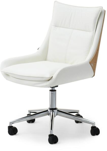 LEON bőrhatású irodai forgófotel – elegancia és kényelem egybenA LEON irodai fotel a modern dizájnt ötvözi a mindennapi kényelemmel. Letisztult formavilága és praktikus kialakítása miatt tökéletes választás otthoni irodába, dolgozószobába vagy akár ifjúsági szobába is. Stílusos megjelenése és ergonomikus felépítése garantálja, hogy munka vagy tanulás közben mindig kényelmesen üljön. A fotel legfontosabb jellemzőikarfa nélküli, praktikus kialakítás a szabadabb mozgásért, korpusz elegáns, hajlított , tölgyfa furnérozott rétegelt lemezből, krémszínű, ekobőr kárpitozás az ülőlapon és a háttámlán, krómozott, fémből készült, stabil lábcsillag, görgők a könnyű és csendes mozgatáshoz, magasságban állítható ülőrész a személyre szabott kényelemért. Elegáns és időtálló dizájnA LEON forgófotel megjelenése egyszerre modern és klasszikus. A tölgyfa színű fa elemek természetes melegséget sugároznak, míg a krémszínű ekobőr és a krómozott lábcsillag elegáns, minimalista összhatást kelt. Ez a stílusos kombináció bármilyen belső térben harmonikusan mutat – legyen szó skandináv, loft vagy letisztult, modern enteriörről. Kényelem, amelyre minden nap számíthatA puha, ekobőrrel bevont ülőfelület és háttámla megfelelő tartást biztosít a hosszabb munkanapok során is. A bőrhatású kárpit nemcsak elegáns, hanem rendkívül könnyen tisztán tartható, így fotelje mindig ápolt és újszerű marad. Stabilitás és funkcionalitásA masszív, krómozott lábcsillag öt görgője biztosítja a stabil tartást és a könnyű mozgathatóságot. Az állítható magasság lehetővé teszi, hogy a fotelt mindig az Ön testmagasságához és asztalához igazítsa, elősegítve a helyes testtartást és a komfortos munkavégzést. MéretekTeljes szélesség: 62,5 cmTeljes mélység: 68 cmTeljes magasság (minimum): 89 cmTeljes magasság (maximum): 99 cmÜlőfelület szélessége (belül): 42 cmÜlőfelület szélessége (kívül): 55 cmÜlőfelület mélysége: 45 cmÜlőfelület magassága (minimum): 48 cmÜlőfelület magassága (maximum): 58 cmHáttámla szélessége: 50 cmHáttámla magassága: 44 cmMagasságállítási tartomány: 10 cmA LEON irodai forgófotel nemcsak kényelmes munkaeszköz, hanem otthona vagy irodája elegáns dísze is. Válassza a praktikum és a stílus tökéletes kombinációját!