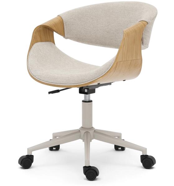 RAPID irodai forgószék – elegancia és kényelem modern formábanA RAPID irodai forgószék tökéletes választás mindazoknak, akik a kényelmet és a modern stílust keresik otthoni irodájukban, dolgozószobájukban vagy coworking térben. Ergonomikus kialakítása, elegáns részletei és mobil alapja biztosítják, hogy használata hosszú távon is komfortos és praktikus legyen. A RAPID fotel legfontosabb előnyei:Univerzális felhasználhatóság: otthoni iroda, dolgozószoba, ifjúsági szoba vagy coworking tér. Stílusos design, amely ötvözi a fát és a minőségi szövetet. Állítható magasság és 360°-ban forgatható ülés. Modern, hajlított tölgyfa színű karfák. Stabil, ötágú, görgős fém lábcsillag, amely könnyű mozgatást tesz lehetővé. Elegáns megjelenés és letisztult forma A forgószék kárpitozott ülőfelülete puha, bézs színű szövetből készült, amely univerzális árnyalatával bármilyen enteriőrbe könnyedén illeszkedik. A hajlított, tölgyfa színű karfák lekerekített formájuknak köszönhetően nemcsak dekoratívak, hanem kényelmes támaszt nyújtanak a mindennapi munkavégzés során. Kényelem és funkcionalitás Az ülőfelület puha, kellemes tapintású anyaga biztosítja a komfortot hosszú órákon át. Az állítható magasság lehetővé teszi, hogy a fotelt mindig a megfelelő testtartáshoz és íróasztal-magassághoz igazítsa. Az ergonomikus kialakítás támogatja a helyes testtartást, ami különösen fontos a hosszabb munkaidő alatt. Tartós szerkezet A forgószék váza és karfái minőségi, hajlított fából készültek, amely a stabilitás mellett könnyed, modern megjelenést kölcsönöz a bútornak. Az ötágú fém lábkróm stabilitást ad, a tartós, műanyag görgők pedig halk és könnyed mozgást biztosítanak a különböző padlófelületeken. Méretek:Teljes magasság: 73–83 cmTeljes szélesség: 64 cmTeljes mélység: 50 cmÜlőlap magassága: 43–53 cmÜlőlap szélessége: 44 cmÜlőlap mélysége: 40 cmHáttámla magassága: 31 cmA RAPID forgószék a modern otthon vagy iroda nélkülözhetetlen darabja – elegáns, praktikus és kényelmes.